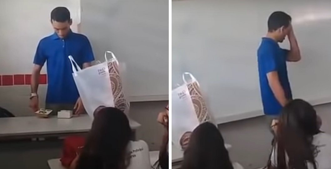 Quando Bruno Rafael è entrato in classe come qualsiasi altro giorno, ha trovato la sorpresa. Dopo aver letto l’emozionante lettera scritta dai ragazzi, la commozione è stata talmente tanta che è scoppiato in lacrime.