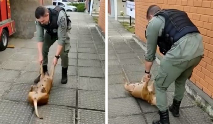 Nelle immagini si può vedere Portaria, la cagnolina, mentre è sdraiata a terra sulla schiena che si diverte a farsi trascinare dalle zampe anteriori dall’agente. Probabilmente, complice il materiale della pavimentazione, la piccola prova solletico e muove di riflesso le zampette posteriori e, forse, proprio per il suo strano modo di giocare ha attirato l’attenzione di moltissimi utenti del web che non hanno potuto fare a meno di sorridere di fronte ad una scena tanto adorabile.