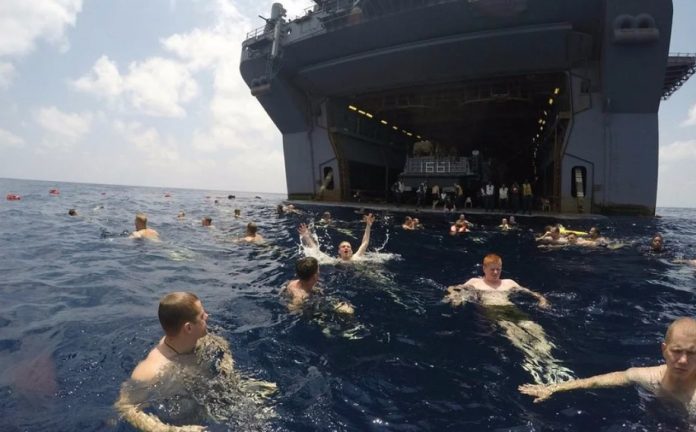 18# Nuotando accanto a una nave in mare aperto, a miglia di distanza dalla terraferma