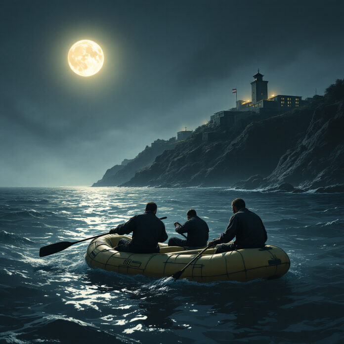 La notte tra l’11 e il 12 giugno 1962, il piano fu messo in atto. Morris e i fratelli Anglin uscirono dalle celle attraverso i fori nel muro, salirono fino al tetto passando da un condotto di ventilazione e scesero senza farsi notare fino alla riva dell’isola. Allen West, invece, non riuscì a uscire in tempo e rimase indietro. I tre gonfiarono la zattera e si allontanarono nell’oscurità, diretti verso la costa.