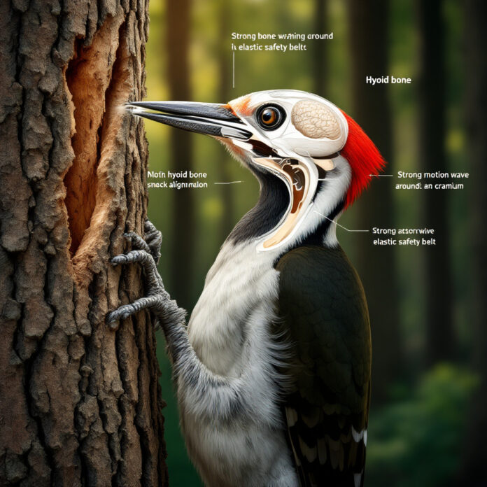 Per molto tempo si è pensato che il segreto fosse solo un cranio molto robusto. In realtà, la protezione del picchio è un sistema completo, fatto di più elementi che lavorano insieme. Il protagonista più sorprendente è un osso speciale: l’ioide. È proprio lui che funziona come una specie di cintura di sicurezza interna o, se preferisci, come un airbag biologico elastico.
