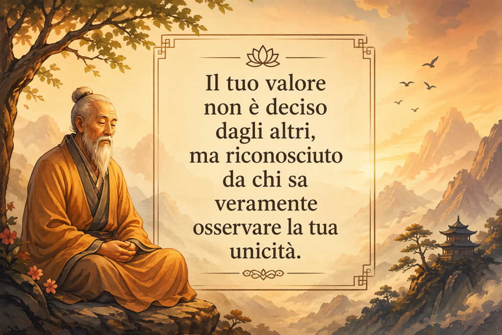 Il maestro sorrise, questa volta guardandolo negli occhi: “Vedi, ragazzo, tu sei come quell’anello. Unico, prezioso e speciale. Ma il tuo valore non può essere riconosciuto da chiunque. Molte persone ti giudicheranno senza conoscerti davvero, proprio come quei mercanti al mercato. Solo chi ha esperienza, sensibilità e capacità saprà vedere ciò che vali veramente.”
