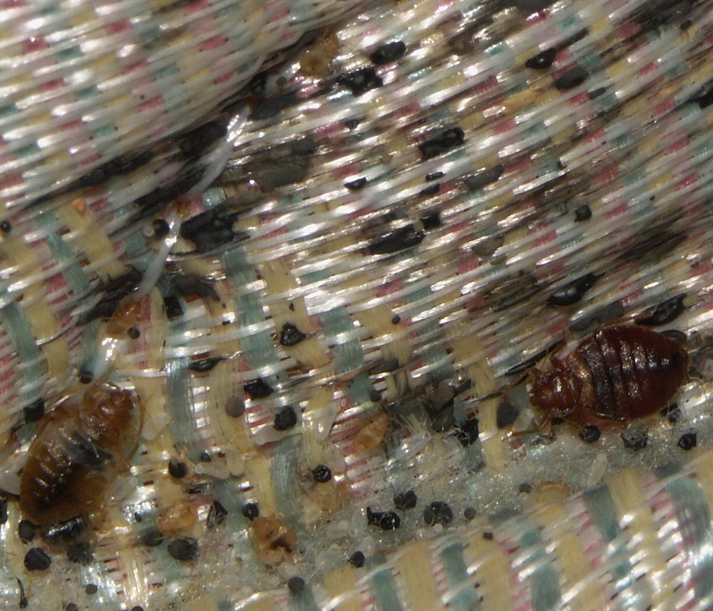 close up of bed bugs on mattress